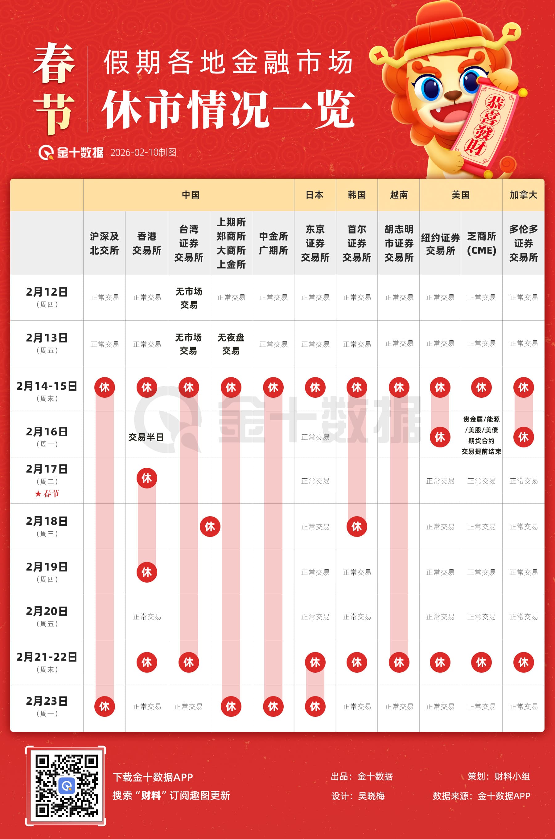【文章来源:财眼数据】 <div><figure class="image" style="text-align: center; margin-bottom: 16px;"><img style="max-width: 100%; height: auto;" title="春节休市图" src="http://jinguix.com/wp-content/uploads/2026/02/h1BQd4by1LUWTrvbfdSOW.jpg" alt=""> <figcaption style="font-size: 12px; margin-top: -16px;">春节休市图</figcaption> </figure></div>