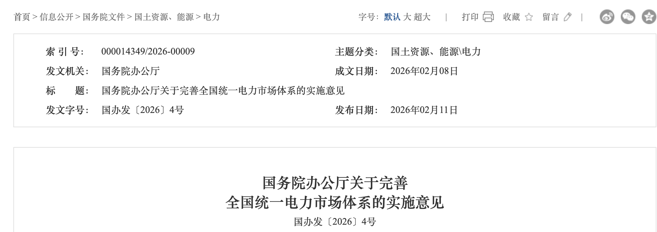 2 月 11 日,国务院办公厅发布 《关于完善全国统一电力市场体系的实施意见》(以下简称 《实施意见》)。