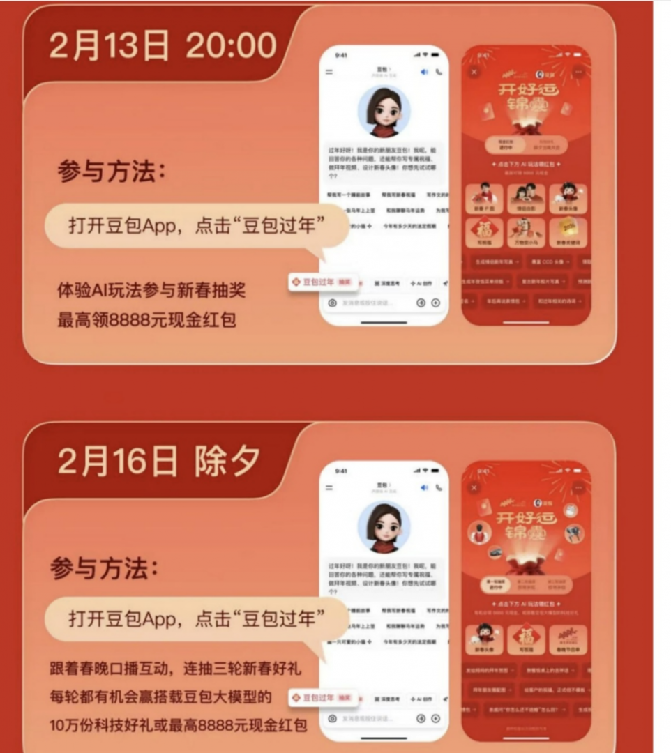 早早宣布旗下火山引擎成为春晚 AI 合作伙伴的字节,则最迟出招。直到近日,字节才正式宣布豆包将在新春期间发红包。