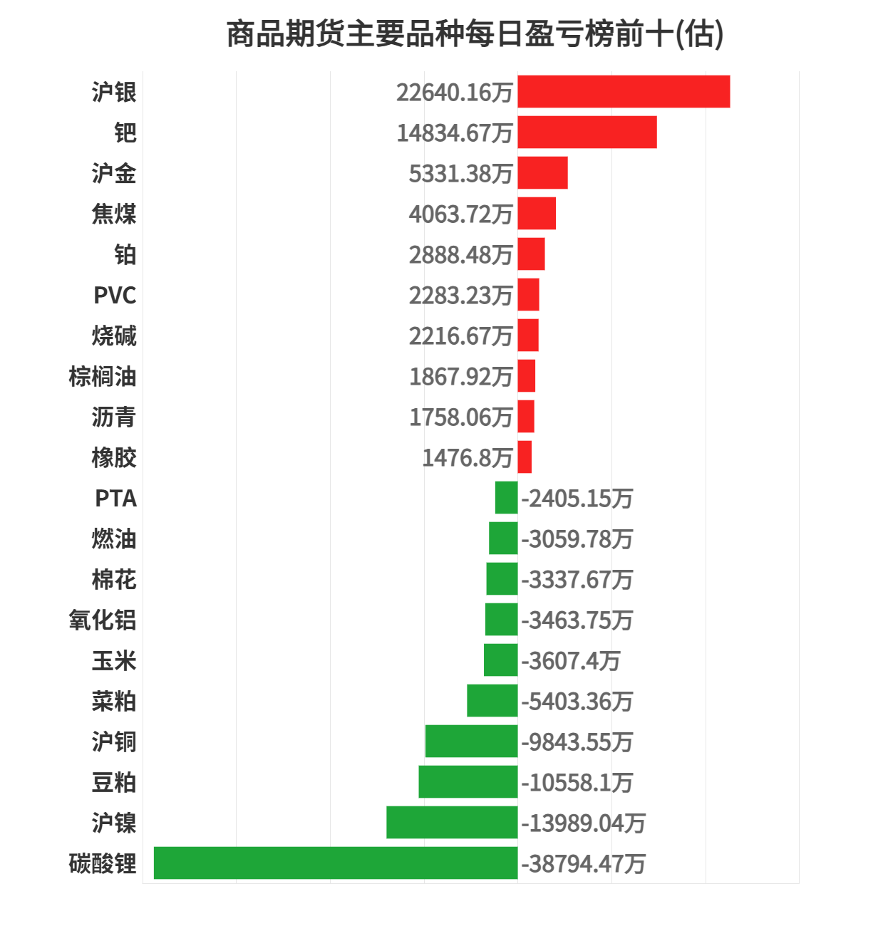 今日商品期货上榜机构席位中沪银盈利第一,为 22640.16 万元。