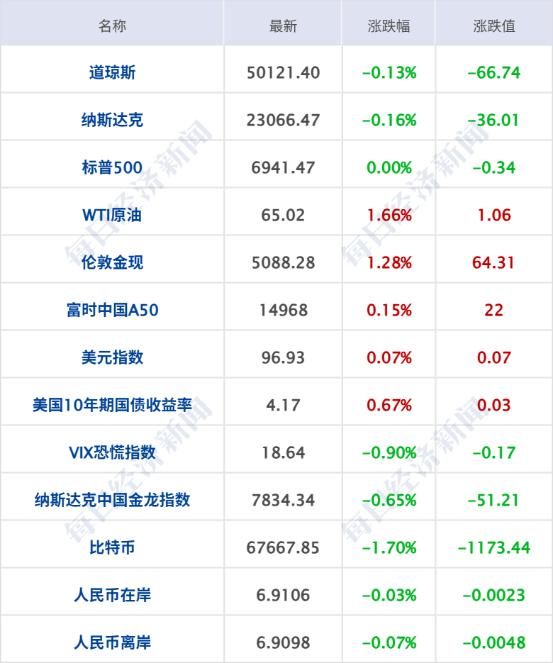 美股三大指数小幅收跌,道指跌 0.13%,纳指跌 0.16%,标普 500 指数微跌 0.01%,热门科技股涨跌不一,谷歌、微软跌超 2%,亚马逊跌超 1%,英特尔涨超 2%,英伟达、苹果、特斯拉涨幅不足 1%;存储概念股、金属与采矿板块涨幅居前,闪迪涨超 10%,美光科技涨超 9%,美国雅保、西部数据涨超 4%,必和必拓、淡水河谷涨超 3%;加密货币概念股大跌,Robinhood 跌超 8%,Coinbase、Strategy 跌超 5%,Circle 跌超 3%。中概股涨跌不一,纳斯达克中国金龙指数跌 0.65%,禾赛科技跌近 6%,晶科能源跌逾 5%,网易跌超 4%,霸王茶姬跌近 4%,好未来跌超 3%,金山云涨约 10%,哔哩哔哩涨近 3%,蔚来涨逾 2%。
