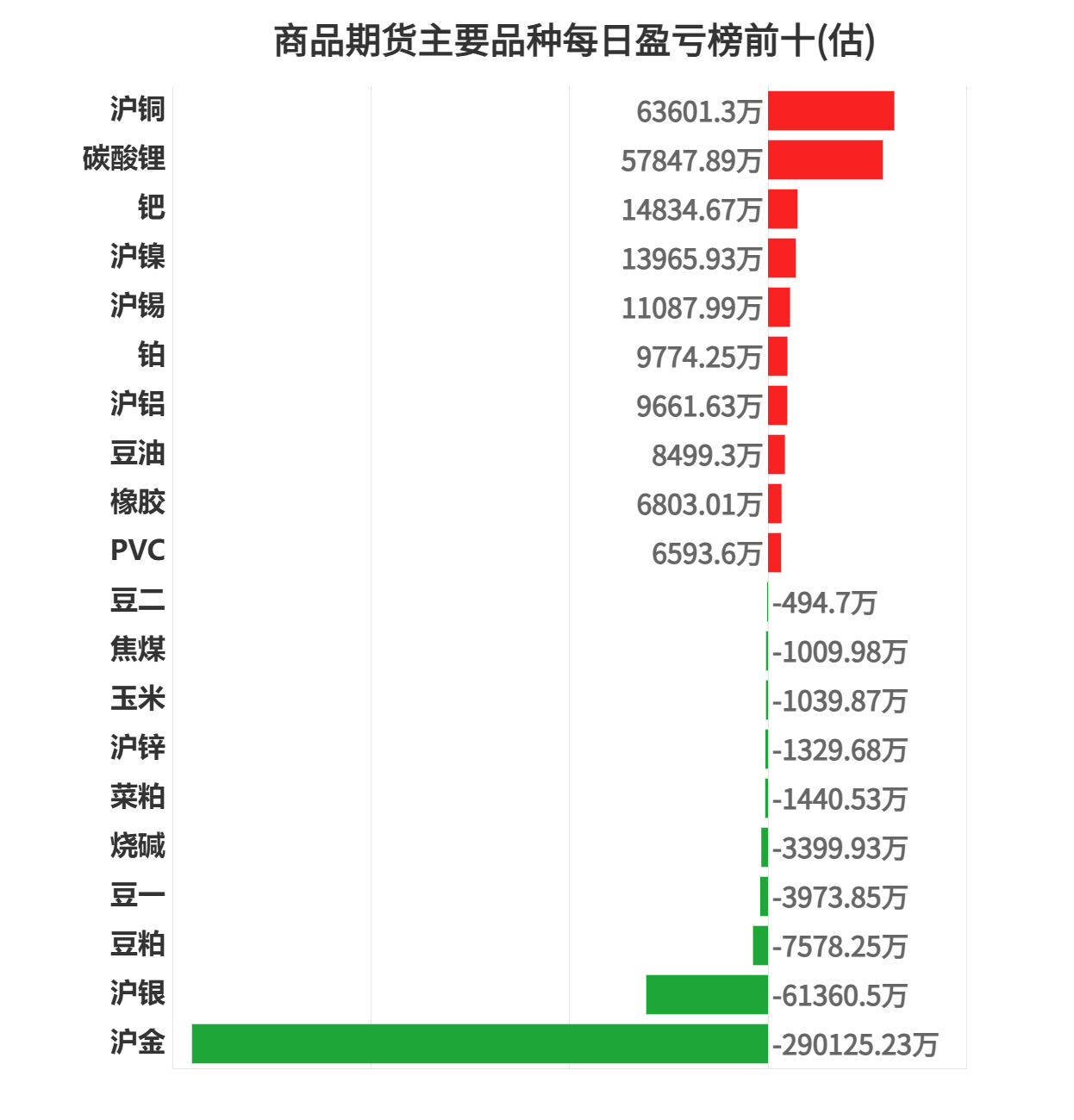 沪金亏损第一,为 290125.23 万元。