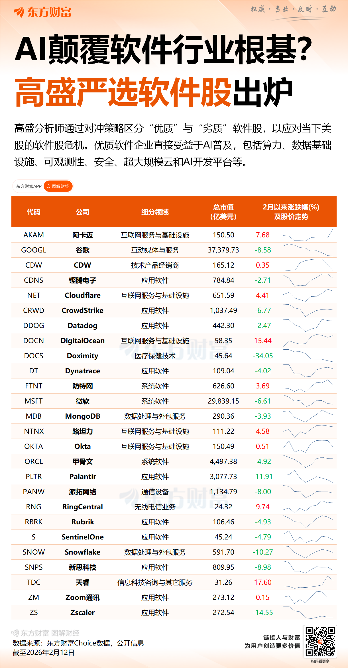 然而,高盛在最新发布的报告中,或许已 「破解」 了这个市场 「首要难题」——他们目前正试图通过对冲策略划清 「优质」 与 「劣质」 软件股的界限,既保持对软件行业的 「敞口」,又对面临 「生存威胁」 的企业设置保护伞。