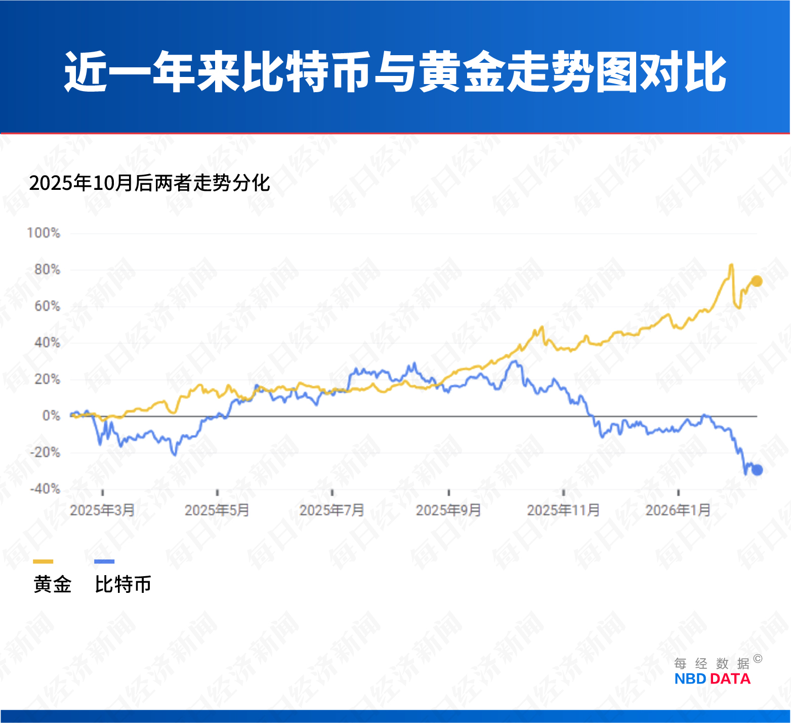 比特币曾被冠以 「数字黄金」 之名。但自 2025 年 10 月比特币创下历史高点以来一直持续 「失血」,黄金却因避险需求数度走向新高,两者走势的背离,揭示出加密货币叙事根基的动摇。