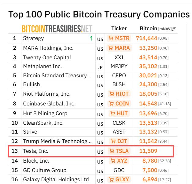 但市场上也不乏 「坚守者」。Bitcoin Treasuries 的数据显示,截至 2 月 8 日,特斯拉持有 11509 枚比特币,这与其在 2025 年第四季度财报中披露的一致。这表明该公司近期并未进行过抛售。