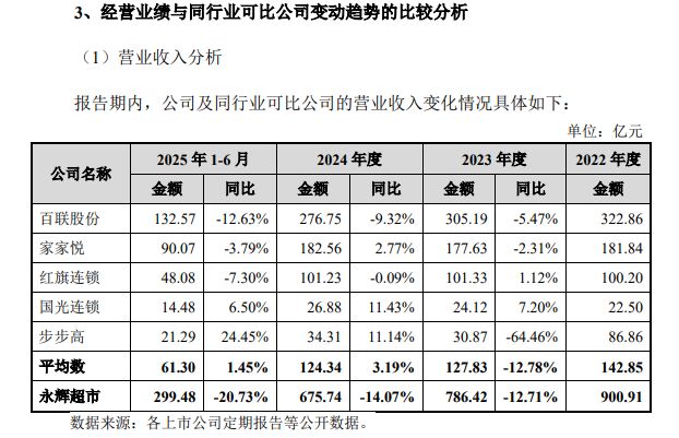 同行方面,永辉超市列举了步步高的转型成果,2025 年上半年,步步高超市通过逐步关闭低效门店、调改潜力门店,开展自有品牌战略,整体经营业绩较上年同期改善。报告期内,公司实现营收 21.29 亿元,同比增长 24.45%,归母净利润为 2.01 亿元,同比增长 357.71%。