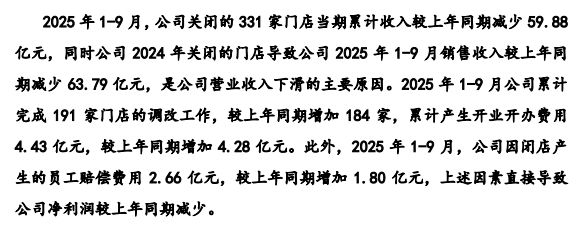 去年,永辉超市累计关闭了 381 家与公司未来战略定位不相符的门店。资产报废损失、人员优化离职补偿、租赁相关的违约赔偿等直接影响了公司利润水平。永辉超市另一公告显示,2025 年前三季度公司累计关闭了 331 家门店,因闭店产生的员工赔偿费用合计 2.66 亿元。