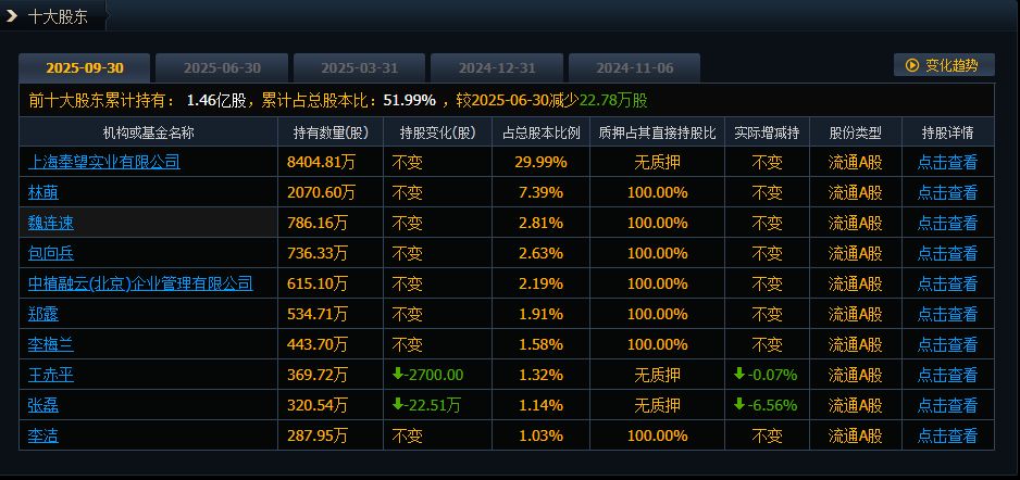 据以上数据计算,出席*ST 宇顺现场会议的股东及股东授权委托代表中,反对股份占公司有表决权股份总数的比例约为 4.53%。同花顺显示,截至 2025 年 9 月 30 日,*ST 宇顺前十大股东合计持股比例占公司总股本的 51.99%。其中,有八位股东的持股比例不足 3%,还有七位股东所持股份处于 100% 质押状态。