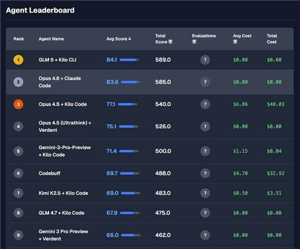 在代理编程测试上,智谱 GLM-5 略胜 Claude 一筹。