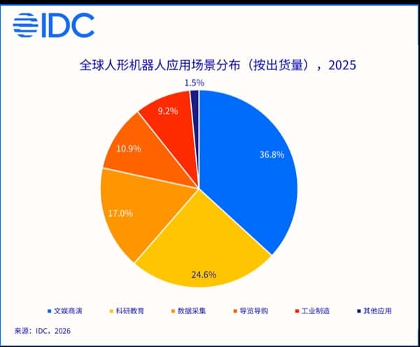IDC 预测,到 2026 年,中国人形机器人应用场景将提升至当前的 3 倍以上,市场规模将近 13 亿美元,同比增长翻倍以上。IDC 中国研究经理李君兰认为,未来三到五年,工业场景有望进一步突破,平台化能力与智能系统生态将成为长期竞争焦点。