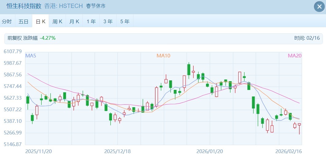 2 月 16 日 (除夕),港股迎来半日市交易 (9:30—12:00),市场呈现低开后震荡回升态势,交投受港股通关闭影响相对温和,核心指数多数收涨,板块分化明显,AI 概念股与贵金属板块成为今日最大亮点,为春节假期前的市场画上阶段性句号。