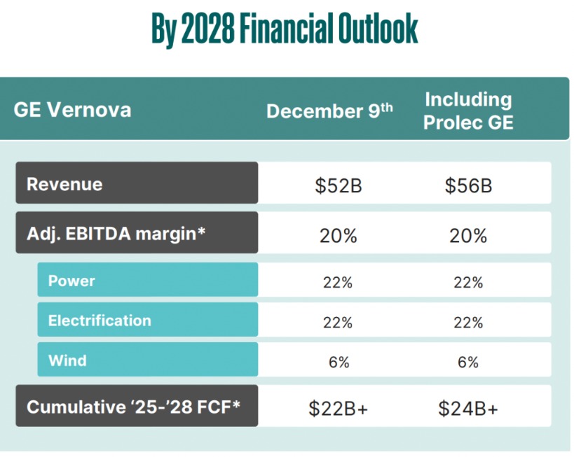 GE Vernova 提出的 2028 财年业绩指引