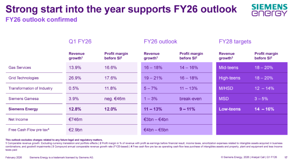 西门子能源给出的 2026 财年、2028 财年业绩指引