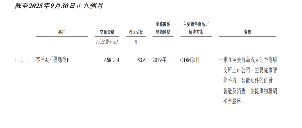 报告期内,小米始终是公司的第一大客户,销售额分别达 4.93 亿元、5.61 亿元和 4.69 亿元,在总收入中的占比也由 2023 年的 48.6% 增至 2025 年前三季度的 60.6%。