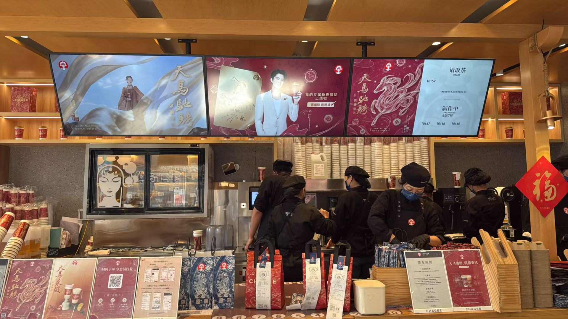 春节假期,霸王茶姬门店员工在忙碌