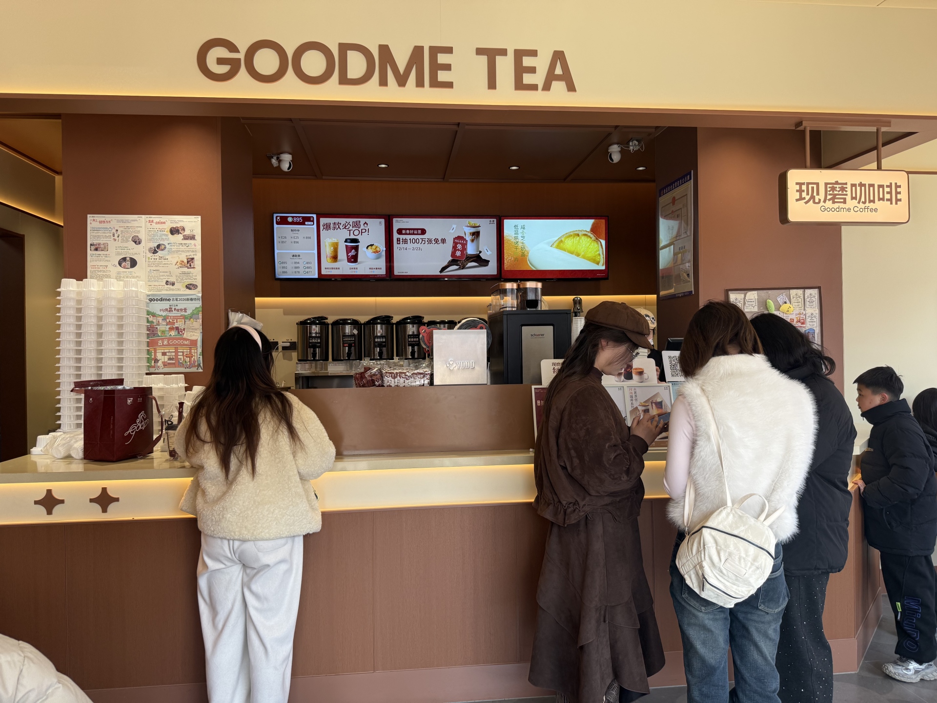大年初二,古茗门店顾客在排队取单