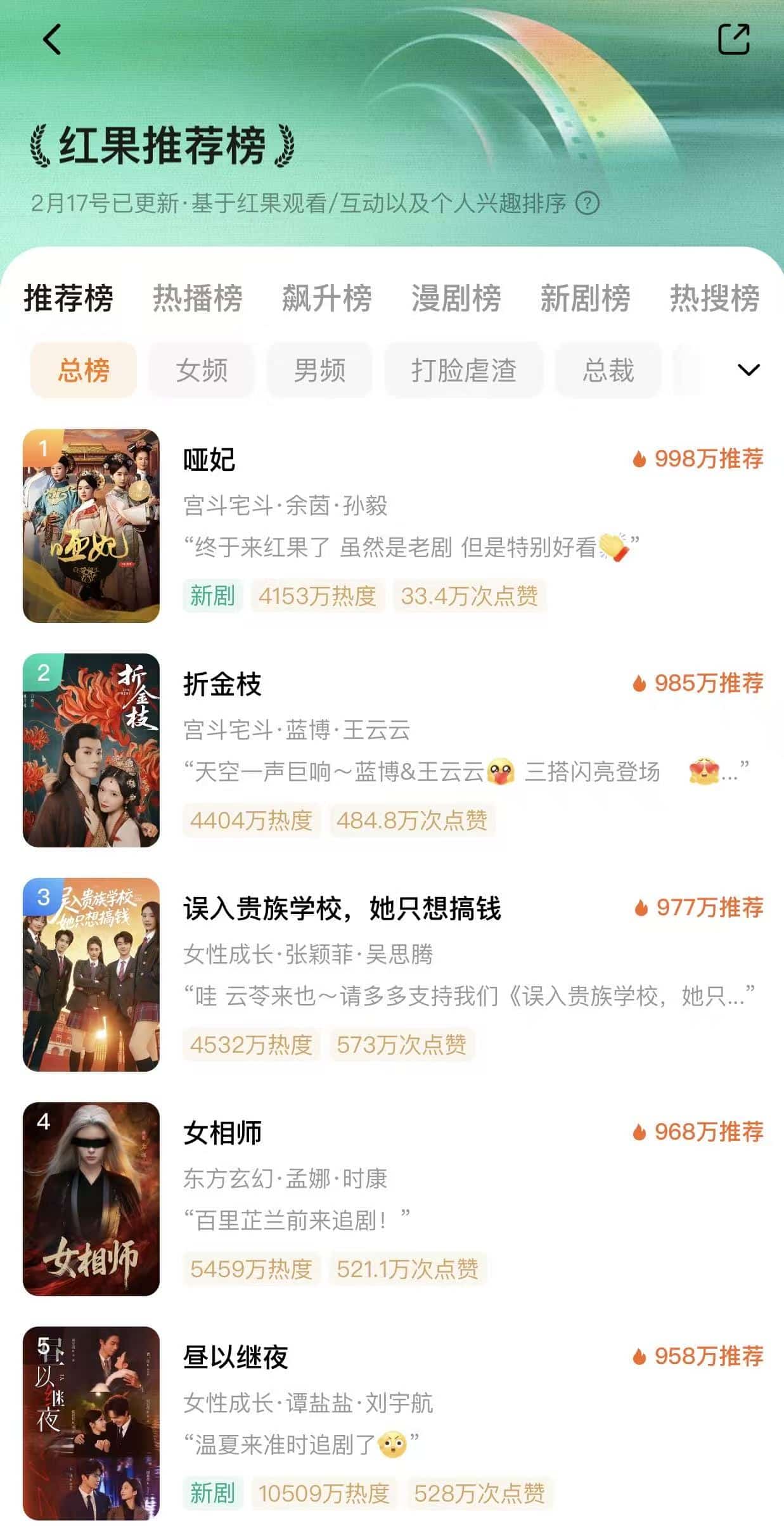 春节档短剧为何如此火热?「春节假期是全民休闲娱乐需求最旺盛的时段,流量窗口与用户时间高度集中,用户空闲时间大幅增加,观看意愿强烈。平台借此 『造节』,将短剧纳入春节娱乐消费场景,精准承接合家欢、轻解压的内容需求。」 日前,深圳深爽文化科技有限公司总裁张珈铭接受记者采访时说道。