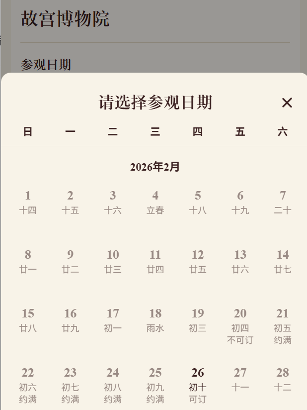 故宫博物院方面,目前至大年初九 (2 月 25 日) 的参观门票均已约满。