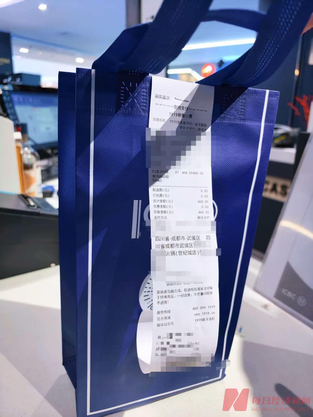 春节期间,在店值守的小金正在为客人打包下单的酒水 图片来源:每经记者 温梦华 摄