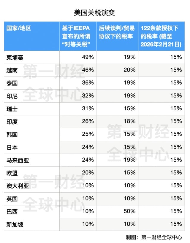 仅过去一天,美国总统特朗普宣布将对输美商品加征的 「全球进口关税」 税率从 10% 提高到 15%。