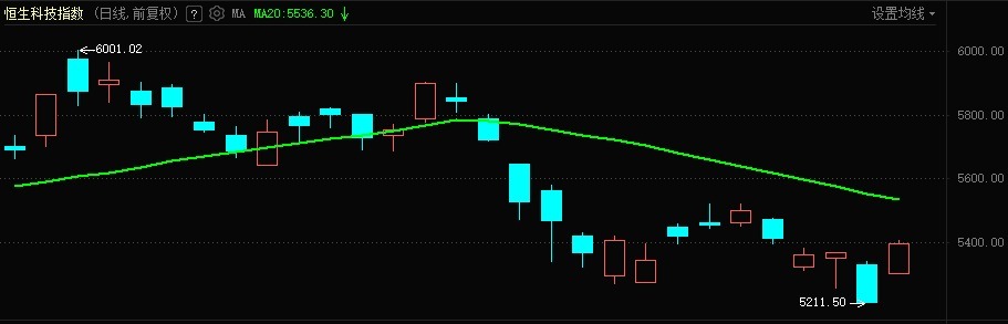 恒生科技指数同步高开,开盘报 5303.5 点,上涨 92.0 点,涨幅 1.77%,盘中震荡上行,实时报 5389.49 点,涨幅升至 3.42%,最高触及 5406.77 点,成交额 101.23 亿港元,成分股大多上涨。