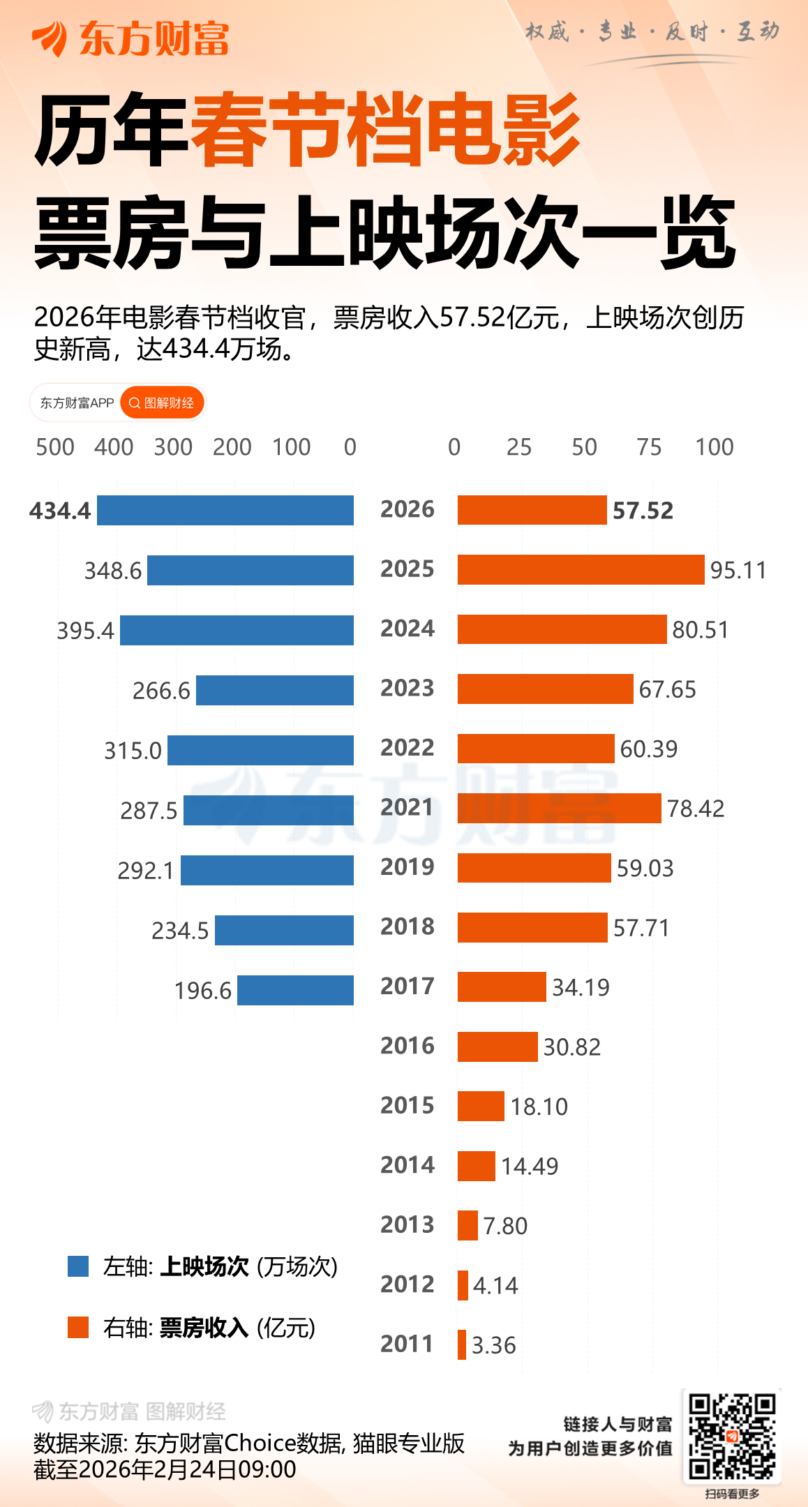 值得一提的是,从全年票房来看,2 月 23 日下午,据央视新闻援引网络平台数据,2026 年年度电影总票房 (含预售) 突破 80 亿,暂列全球单一市场票房第一。此外,截至目前,2026 年 2 月票房已超 60 亿元。