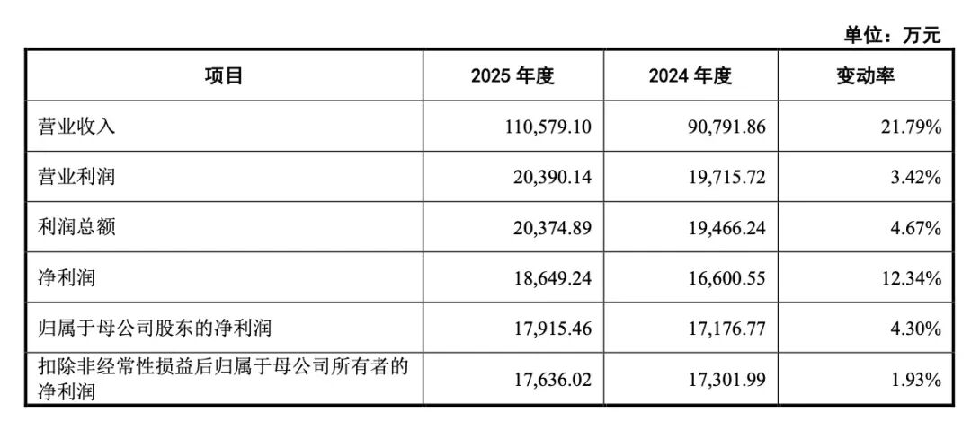固德电材招股书显示,公司 2025 年实现营业收入 11.06 亿元,同比增长 21.79%;归属于母公司股东的净利润 1.79 亿元,同比增长 4.30%。