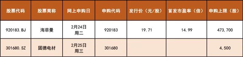 根据目前安排,本周将迎来马年首批可申购新股。一只为高端电声 「小巨人」,另一只为全球新能源汽车动力电池安全防护部件的核心供应商。