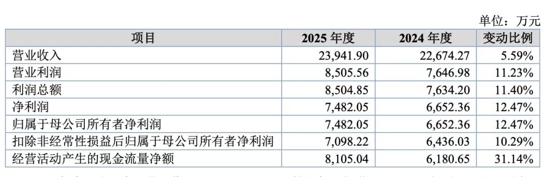 海菲曼招股书称,公司 2025 年实现营业收入 2.39 亿元,同比增长 5.59%;归属于母公司所有者净利润 7482.05 万元,同比增长 12.47%。