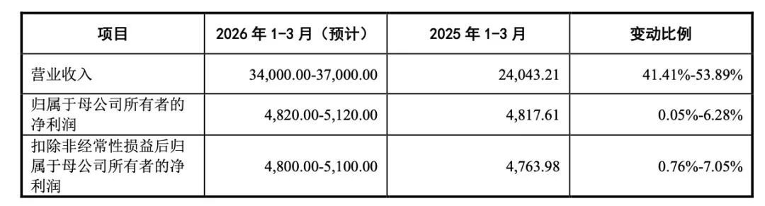 此外,固德电材披露了 2026 年一季度业绩预测情况。公司预计 2026 年一季度实现营业收入 3.40 亿元至 3.70 亿元,同比增长 41.41% 至 53.89%;实现归属于母公司所有者的净利润 4820 万元至 5120 万元,同比增长 0.05% 至 6.28%。