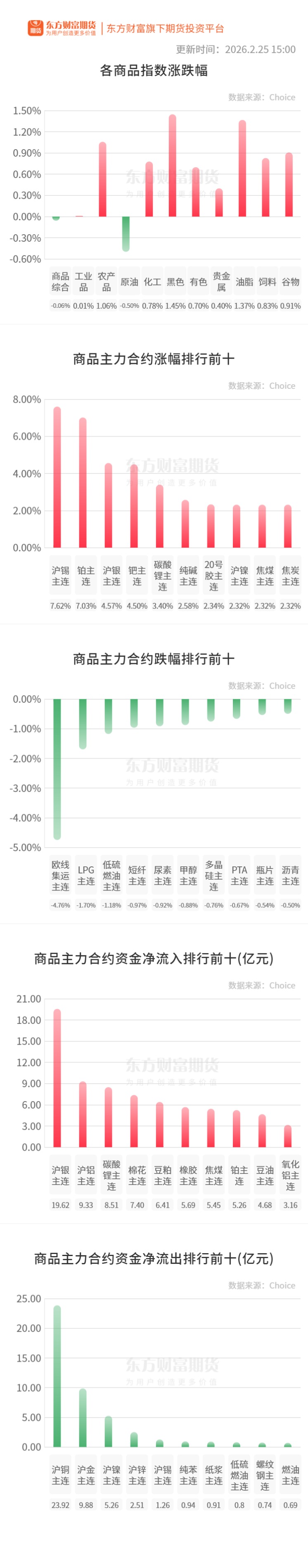 玉米:据 Mysteel 农产品调查数据显示,春节假期结束,前期检修企业陆续复工复产,玉米淀粉行业开机率逐步升高,预计下周开机率增幅较为明显。 本周 (2026 年 2 月 19 日-2 月 25 日) 全国玉米加工总量为 51.87 万吨,较上周增加 3.33 万吨;周度全国玉米淀粉产量为 24.99 万吨,较上周产量增加 2.37 万吨;周度开机率为 45.68%,较上周升高 4.32%。(Mysteel)