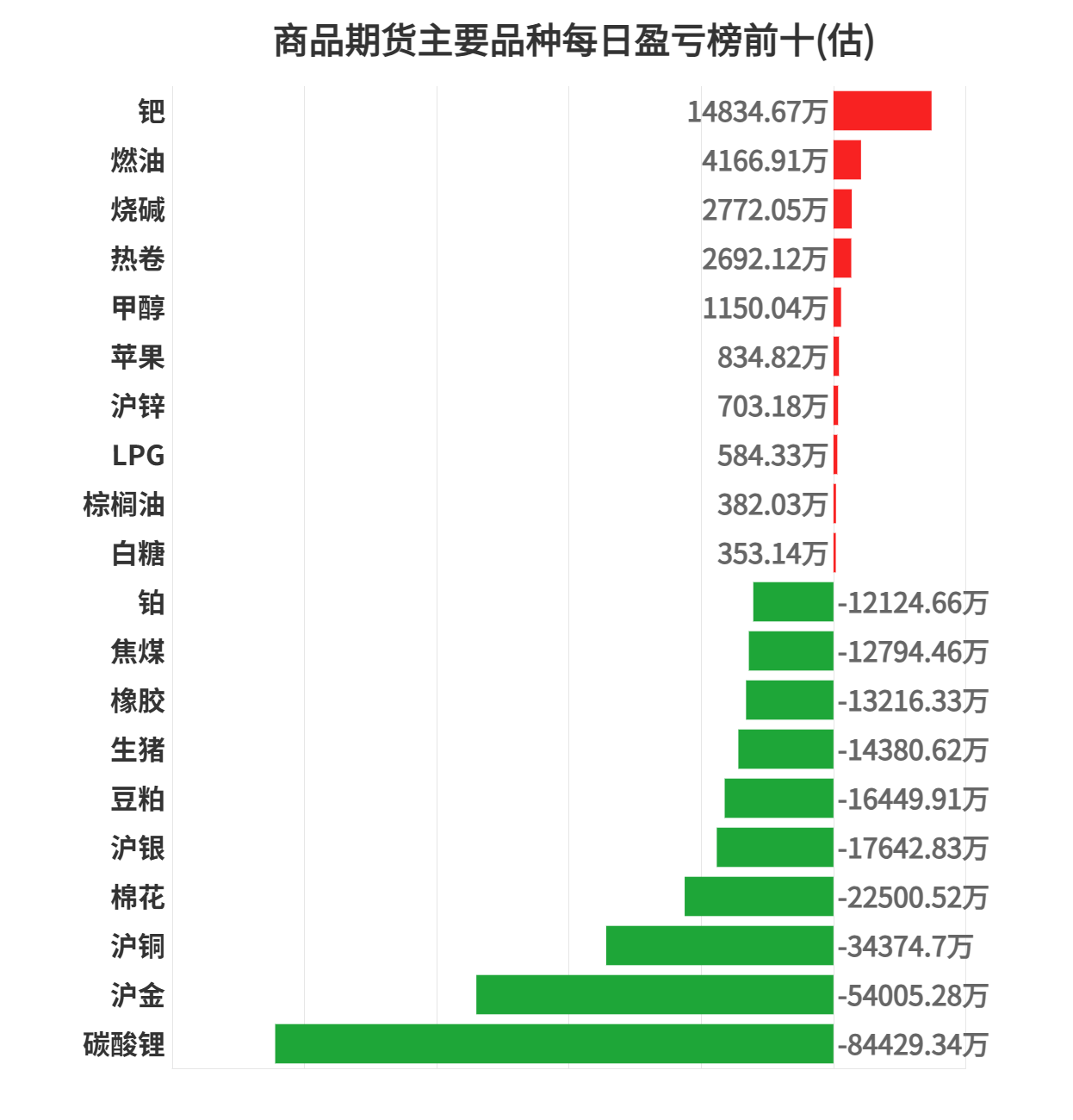 今日商品期货上榜机构席位中钯盈利第一,为 14834.67 万元。