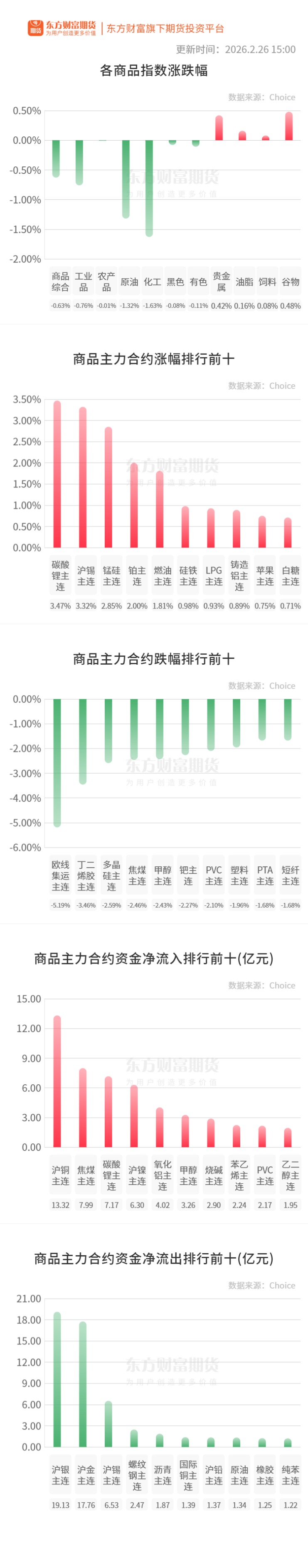 沪铜:供应端进口及国产铜持续到货,需求端因季节性原因下游尚未全面复工复产,供需错配推动库存继续累积。据 SMM 数据,截至 2026 年 2 月 26 日,境内电解铜主流地区社会库存延续节后累库趋势,总量达 53.17 万吨,位于历史性高位。(SMM)