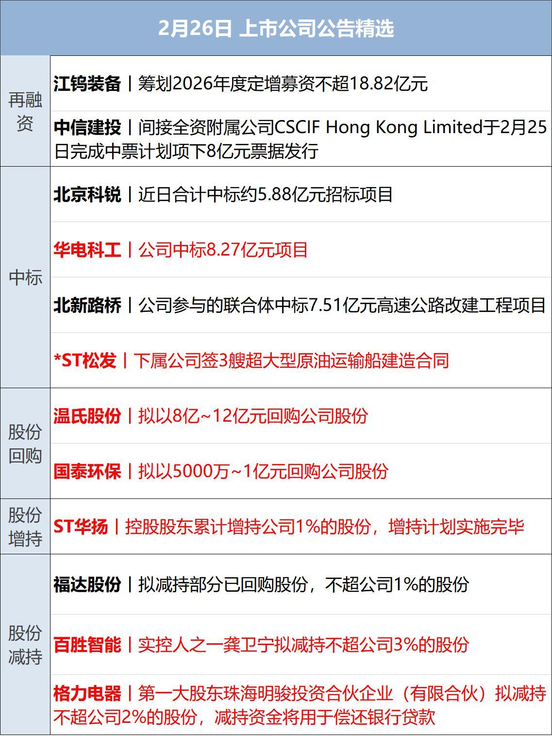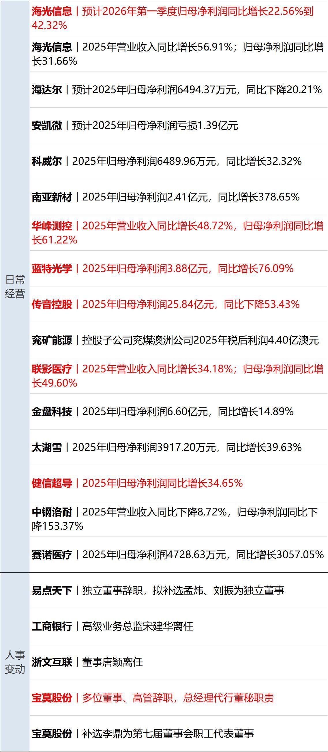 华策影视 (SZ300133,股价 8.75 元,市值 165.22 亿元):2 月 25 日,消息称华策影视内部官宣解散电影部门,明确表示 「资金不再对电影赛道抱有希望和幻想」。公司接线工作人员对此回应称:「去年的电影确实是存在亏损项目的,但是目前没有解散电影部门这一说法,暂时没有要对部门人员进行优化调整的消息,公司经营一切正常。」(21 财经)