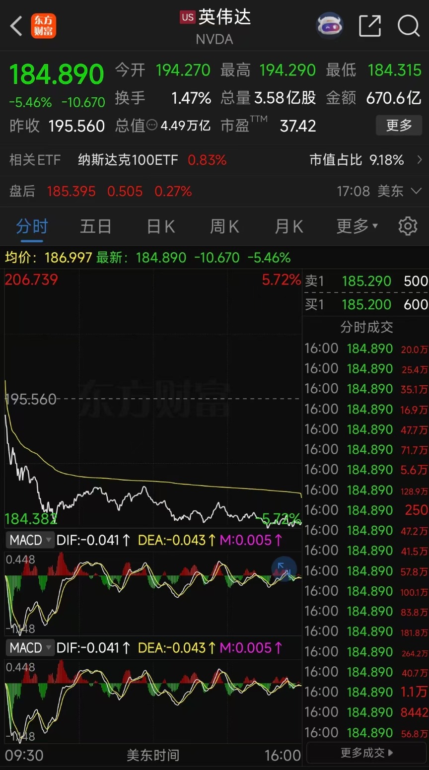英伟达财报再超预期却遇冷淡回应,股价跌超 5%,创去年 4 月 16 日以来最大单日跌幅。