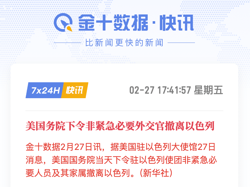 根据美国驻以色列大使迈克·赫卡比 (Mike Huckabee) 周五发给使馆工作人员的一封电子邮件,使馆自当日上午 10:00 起转入 「授权撤离」 状态。根据美国国务院的规定 ,当 「美国国家利益或生命受到迫在眉睫的威胁」 需要时,非必要人员及其家属可以自费撤离。