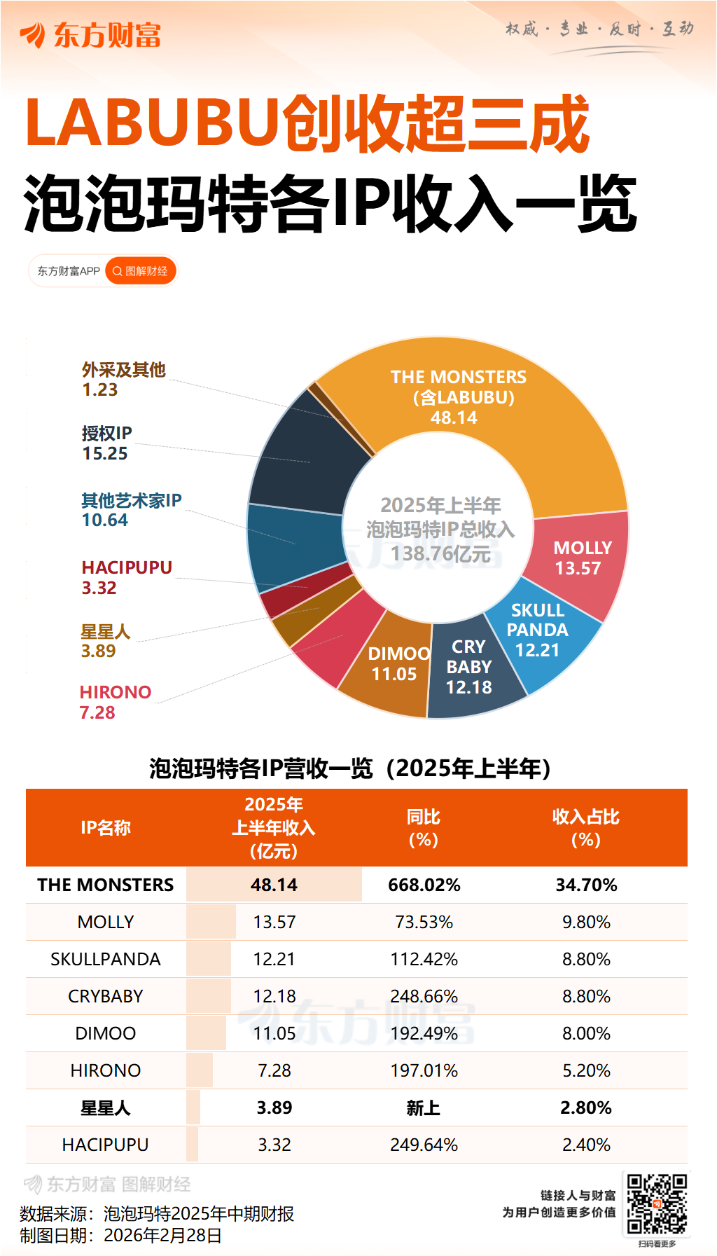 2 月上旬的公司年会上,泡泡玛特创始人王宁高调宣布,2025 年,全品类全 IP 产品全球销量突破 4 亿只。其中,Labubu 单个 IP 就贡献超 1 亿只。