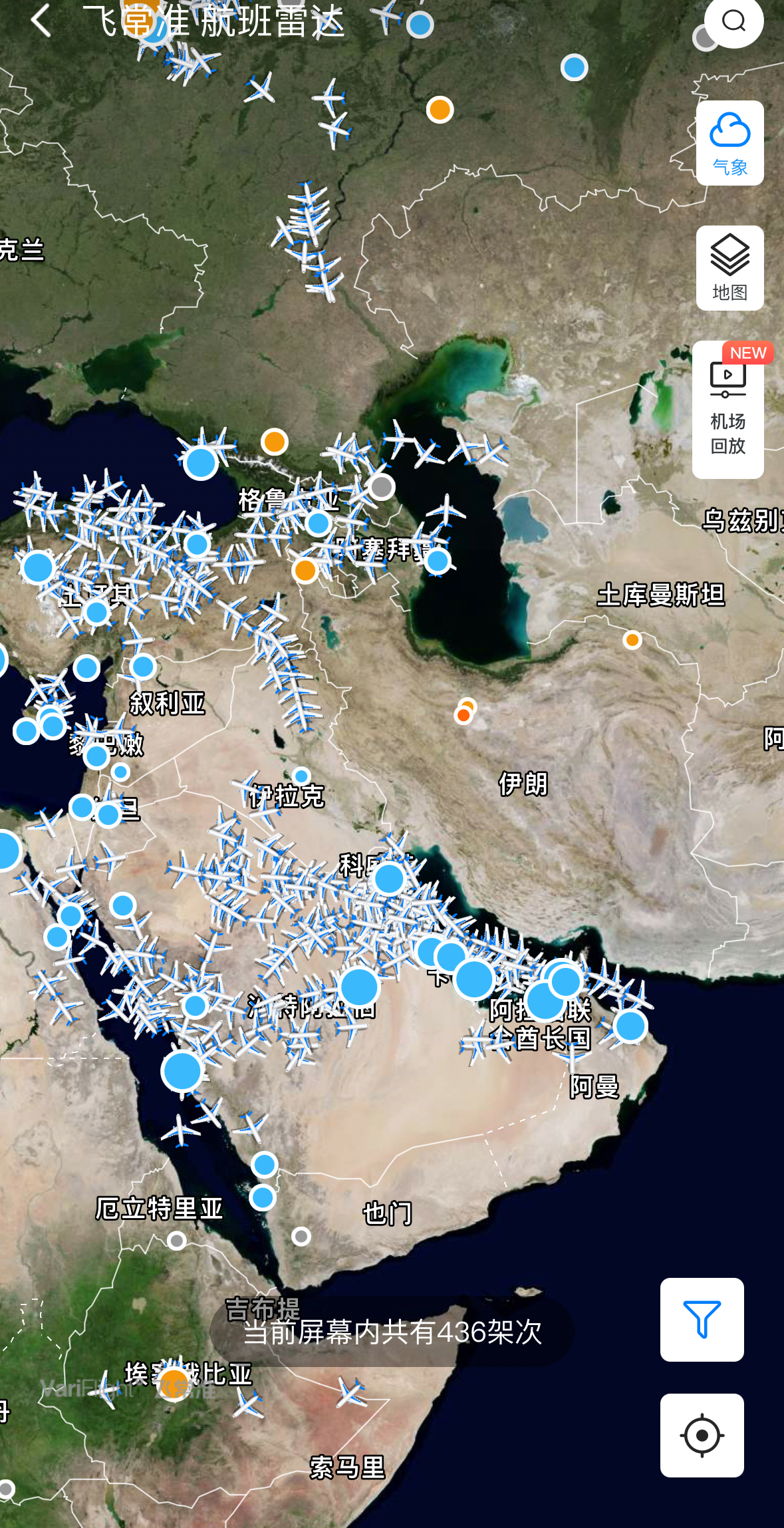 伊朗宣布关闭全国领空六小时 图片来源:飞常准