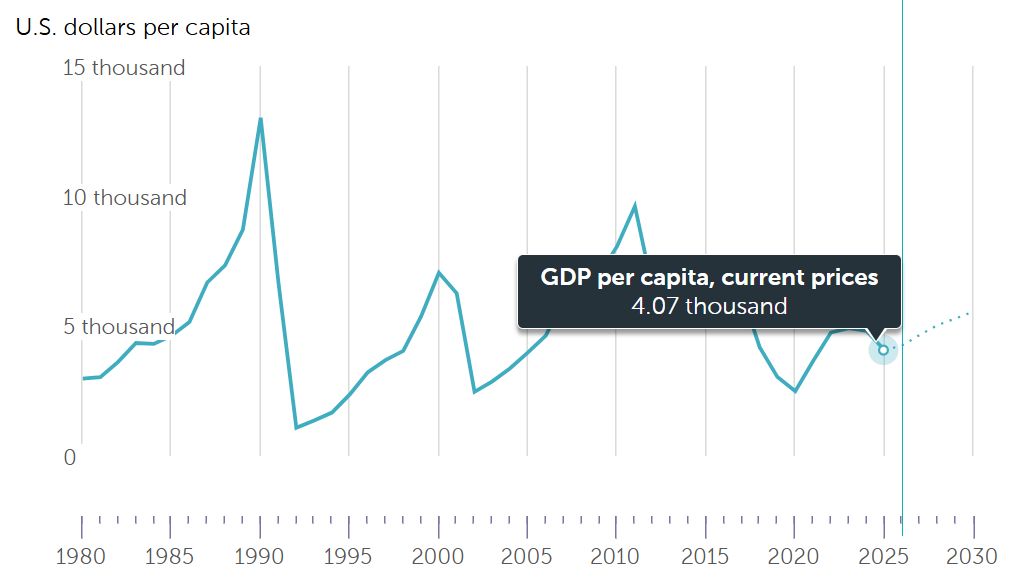 1980 年至 2025 年伊朗人均 GDP 走势 图片来源:IMF