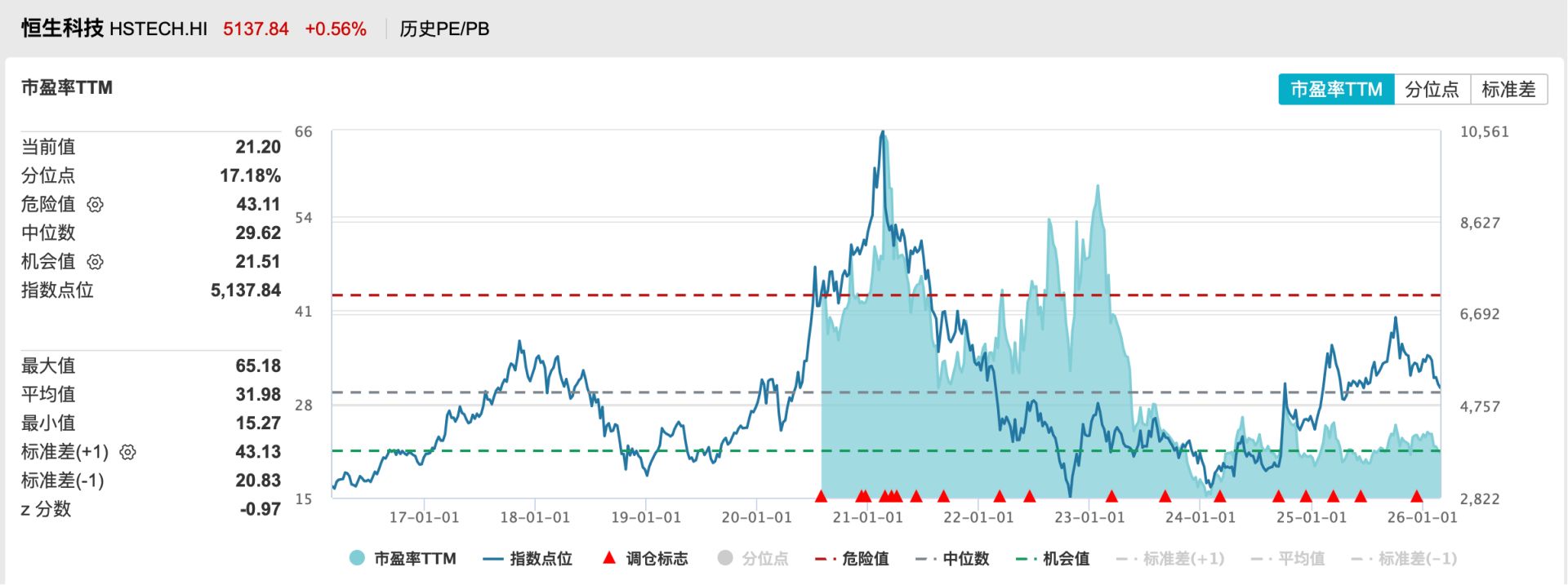 张忆东表示,中国科技板块自身,纵向对比历史中枢,当前估值并不高,恒生科技 PE(TTM) 为 21.2 倍,处于 5 年均值下方约 1 个标准差附近。