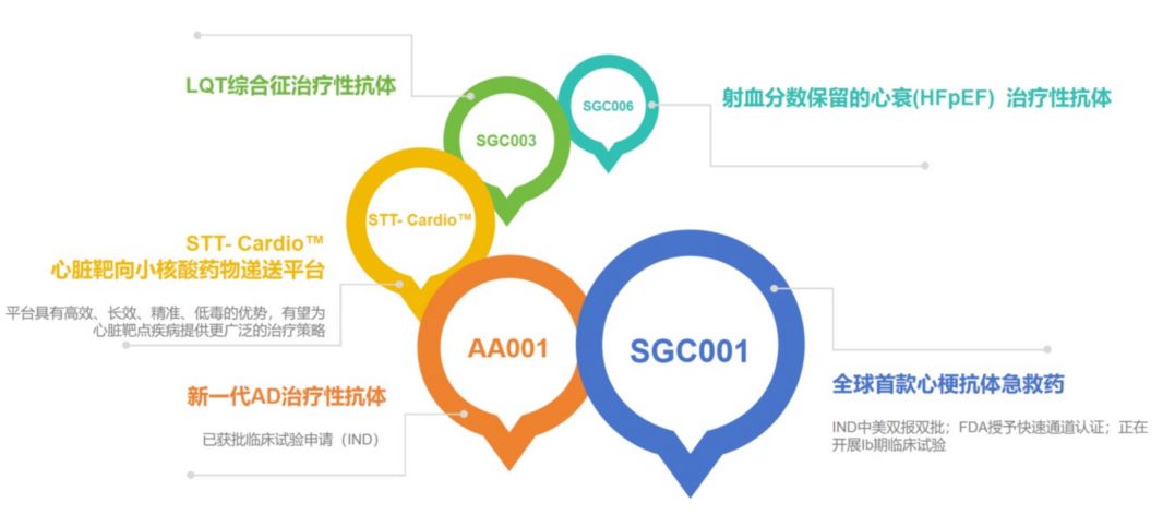 现在热景生物同时开了多个 FIC 管线。比如,舜景医药的 SGC001,是全球首个心梗治疗性抗体药,目前已在国内启动Ⅱ期临床试验;SGT003 精准靶向肿瘤微环境,是针对 X&CTLA-4 靶点的药物中全球首个进入临床的,2026 年启动临床研究Ⅰ期;尧景基因的心脏靶向递送平台 Kardia-ShuttleTM 避开了竞争激烈的肝内靶向,突破肝外递送这一技术瓶颈。