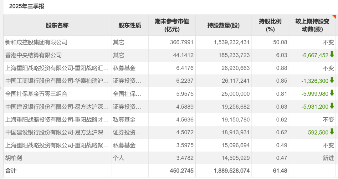 2024 年四季度,重阳投资再度加仓,截至 2024 年底,重阳投资旗下 3 只产品进入新和成前十大股东名单,直到 2025 年三季度末依然持有。