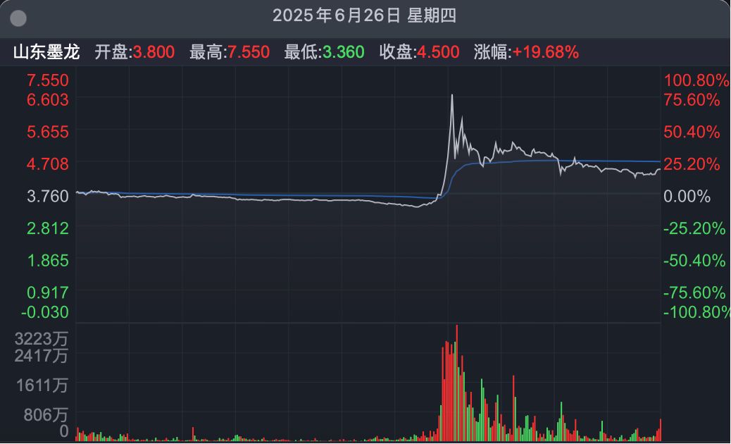 2025 年 6 月 26 日山东墨龙 H 股分时图