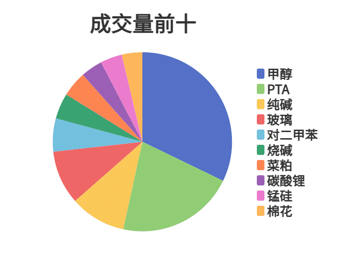 市场成交量前十和持仓量前十如下图所示: