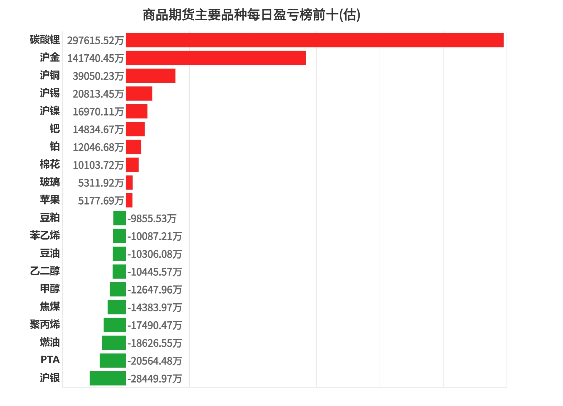 今日商品期货上榜机构席位中碳酸锂盈利第一,为 297615.52 万元。