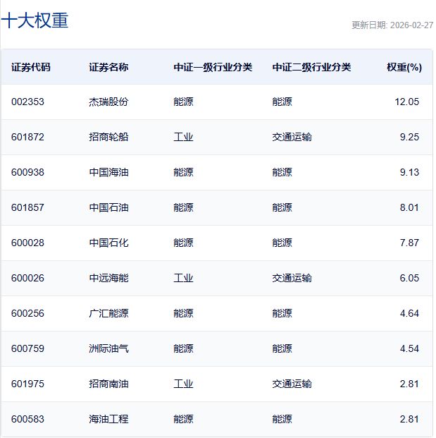 中证油气资源指数主要权重股