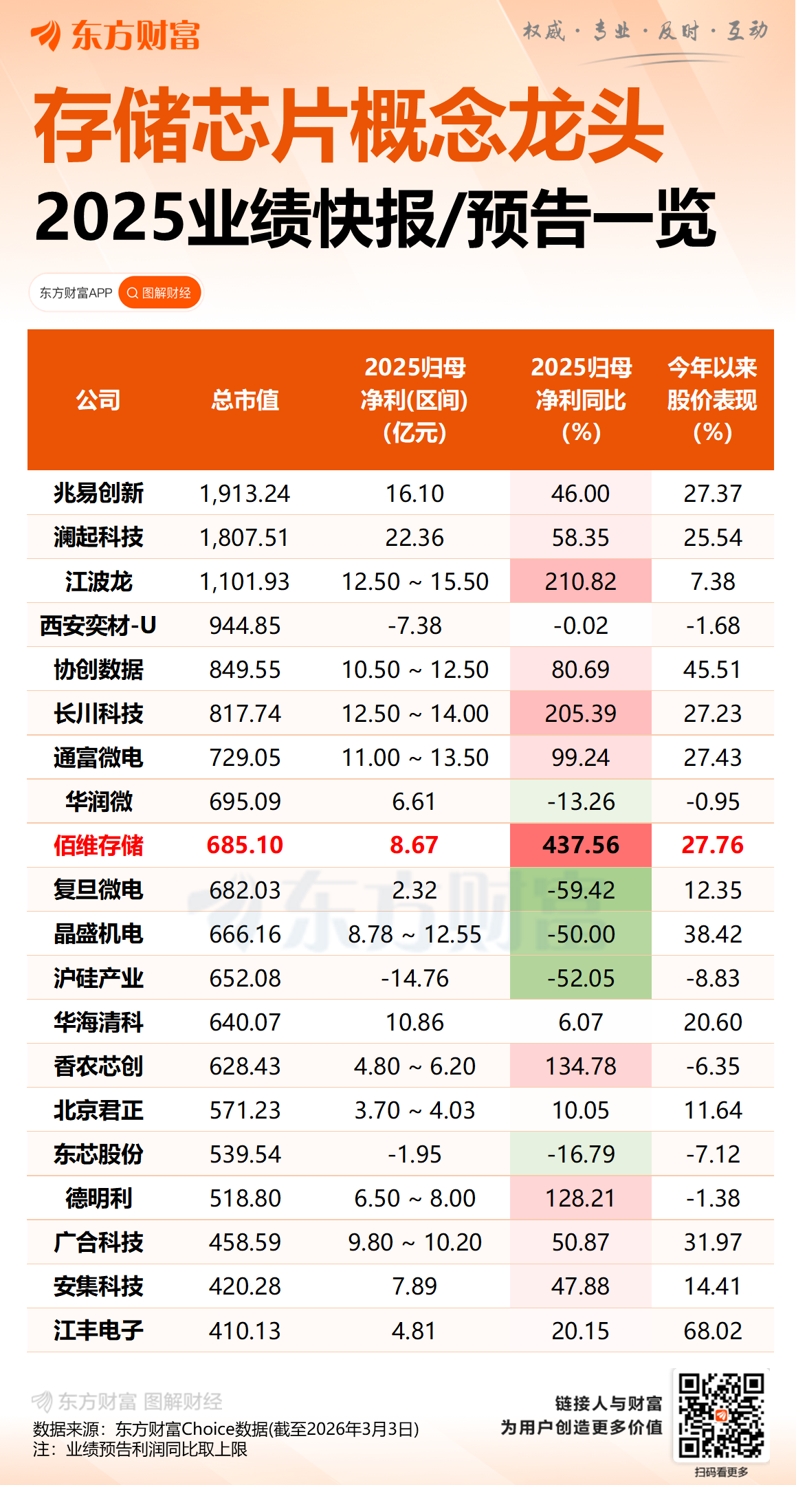 佰维存储3 日发布 2026 年 1-2 月业绩预告的自愿披露公告。