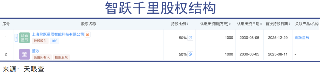 去年 8 月,一家名叫智跃千里的公司正式成立,这个名字很容易让人联想到是阶跃和千里的联合体。年底,原大股东郝建国退出,阶跃星辰目前成为持股 50% 的股东。