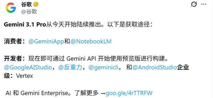 Gemini 3.1 Pro 你用上没?谷歌说推理能力比 Gemini 3 Pro 提升了一倍以上,有没有那么厉害?本文将全面介绍 Gemini 3.1 Pro 的核心能力以开发者如何调用 Gemini 3.1 Pro API,普通用户如何快速使用。