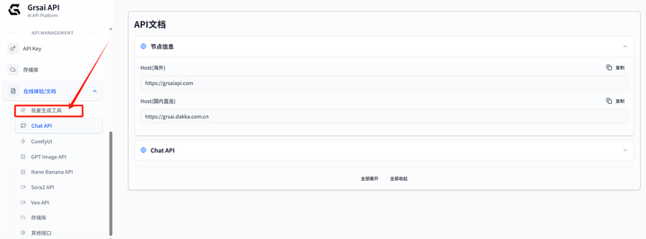 Grsai 提供两种接入地址 (base url),根据网络环境选择: